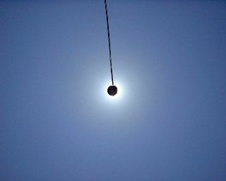 For serious aureole photography, a simple handheld occlusion device is the preferred way to block the direct solar disk. This method has the added safety advantage of not requiring the photographer to peer through the camera’s viewfinder when the camera is being pointed toward the Sun. A very simple but effective occlusion device can be made by mounting a spherical ball or disk on the end of a thin rod or stiff piano wire. Both the ball or disk and the support rod should be painted flat black. The ball or disk should have a diameter slightly larger than that of the camera’s lens.